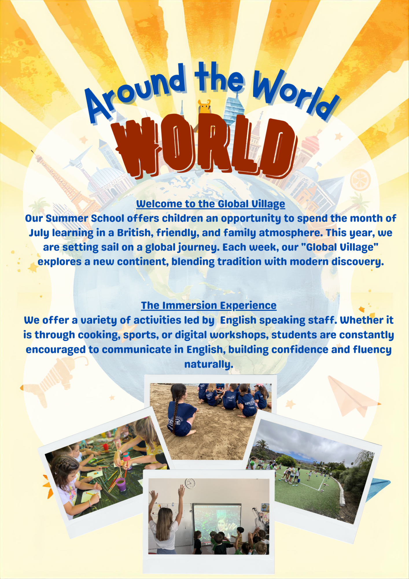 Nuestra Escuela de Verano, abierta para niños de 3 a 15 años, brinda la oportunidad de disfrutar del mes de julio en un entorno inmersivo de inglés y en la cultura británica. Durante este tiempo, los alumnos podrán mejorar y desarrollar sus habilidades lingüísticas en un ambiente cercano, acogedor y lleno de diversión.